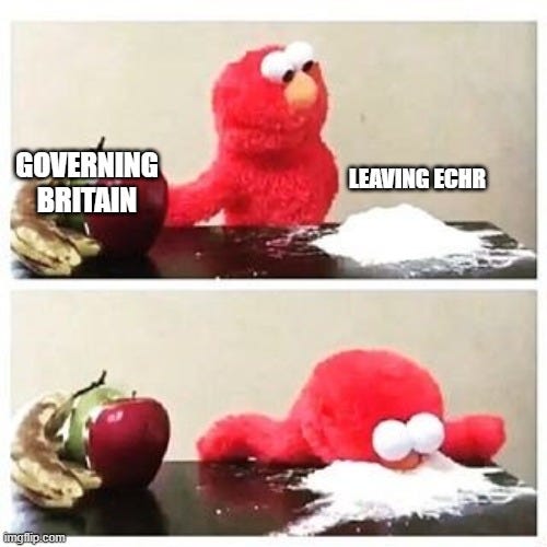 As I’ve previously remarked, ECHR exit has become an article of faith for the right. It is a golden chalice they covet - but have coveted it for so long, they’ve forgotten why they want it. As with Brexit, utopia is only ever one treaty withdrawal away. It didn’t work last time, and it’s not going to work this time. Meanwhile, I keep wondering what could be achieved if we had a government that was actually focussed on the issues at hand, instead of reorganising the deckchairs. That, though, looks to be a situation vacant for the foreseeable future.