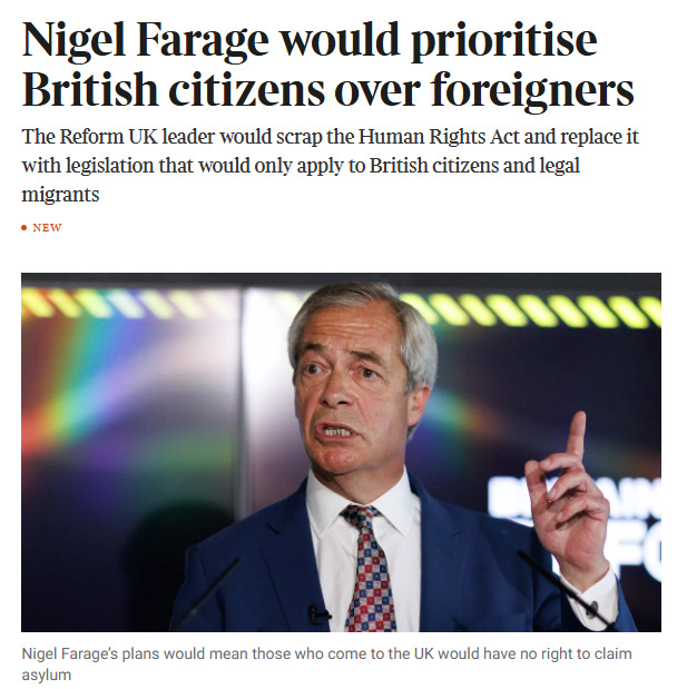 You’ve probably seen the news that Nigel Farage has committed to plan of sorts. There’s a first time for everything I suppose. The first step of Reform's plan is to leave the European Convention on Human Rights and to scrap the Human Rights Act, which enshrines the convention in British law. This would then be replaced by a British Bill of Rights, which would only apply to British citizens and those who have a legal right to live in the UK. The legislation would not include any reference to human rights but instead refer to terms such as 'protection of liberty' and 'free speech', The Times reported.