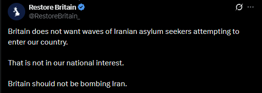 That in its own way demonstrates the utility of pre-prepared policy. You can respond with attacks very rapidly and in a consistent way. Had Restore Britain undertaken the same effort, they could now attack Reform from a position of strength. But they didn’t. They’re attacking Reform’s foreign policy muddle today when they themselves do not have a foreign policy (unless you count one of Uncle Rupe’s tweets).